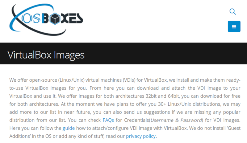 OSBoxes : un site qui fourni des images Linux pré-installées