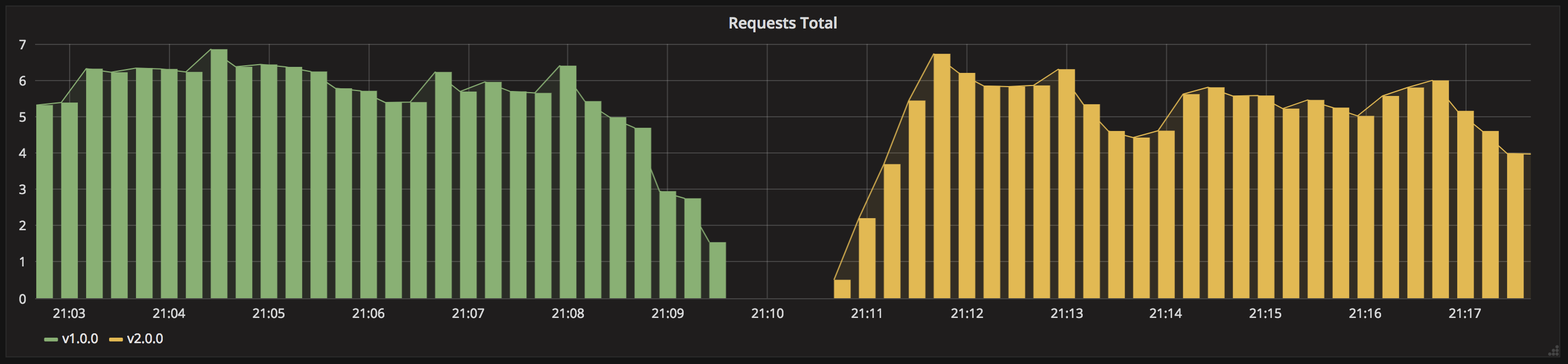 app-v2.ymlcorrespondant. - Observez la réponse aux requêtes dans le terminal ou avec un graphique adapté dans