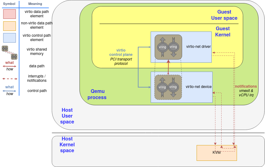 Généralement, l'émulation de périphérique se produit dans l'espace utilisateur à l'aide de QEMU, de sorte que les pilotes principaux communiquent dans l'espace utilisateur de l'hyperviseur pour faciliter les E/S via QEMU.
